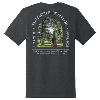 We have ordered T-Shirts to commemorate the Shiloh tour! $5 from every sale will go toward the Preservation Project, which is supporting the Verandah Curlee House. They recently lost a significant amount of funding, and they are thrilled to have us support them! The T-Shirts are Gray, 100% cotton and $25 each in Unisex sizes. Karen will distribute these during the tour to those that have pre-ordered them!